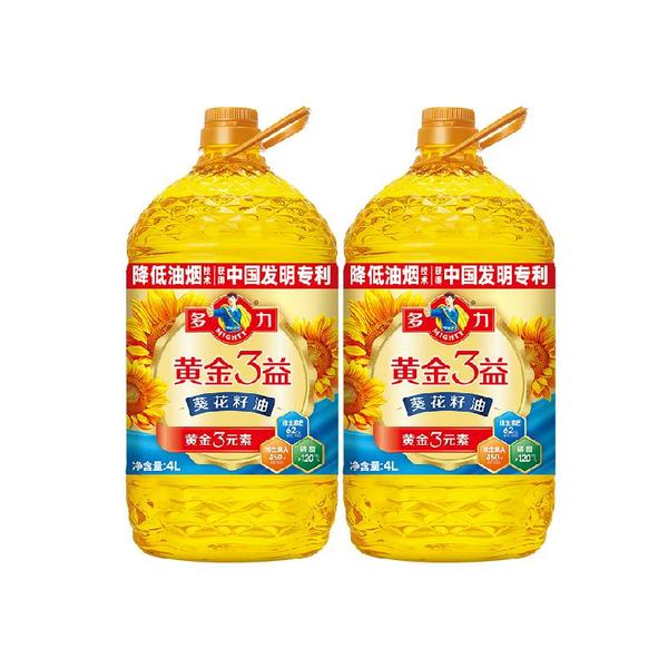 【淘金币抵扣1.99,新客红包2-88到手仅需114.52!!】李佳琦直播多力黄金3益葵花籽油4L*2桶,超赞!