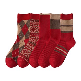 鸿运当头,红袜喜庆来。民族风,百搭新潮流。温暖又时尚,本命年必备。秋冬穿它,好运连连。大红色中筒袜,迎新抢眼选