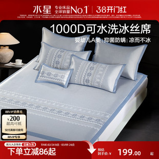 水星家纺1000D可水洗提花冰丝席
